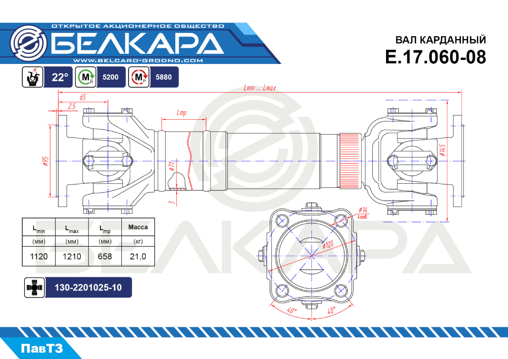 Применение: вал карданный автокрана КС-2561Л («Ивановец»); также в павлодарских тракторах