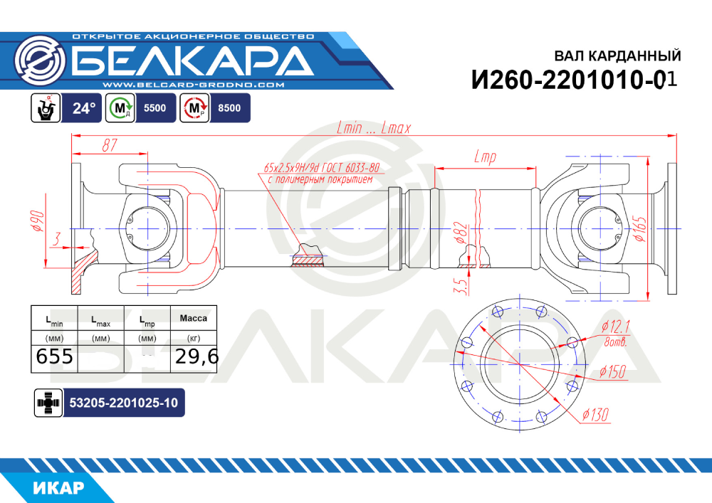 Масса карданного вала: 29,6 кг