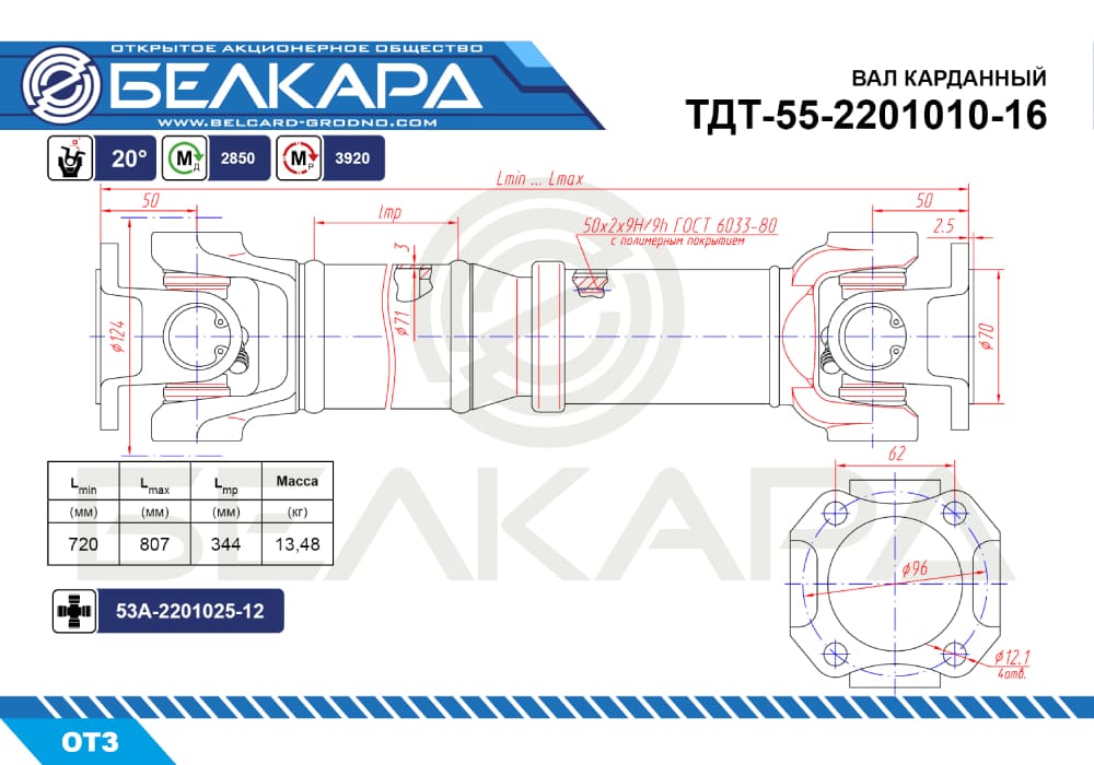 Масса карданного вала: 13,48 кг