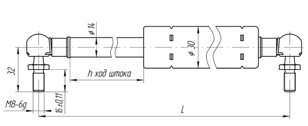 ход штока, мм (h) — 250,