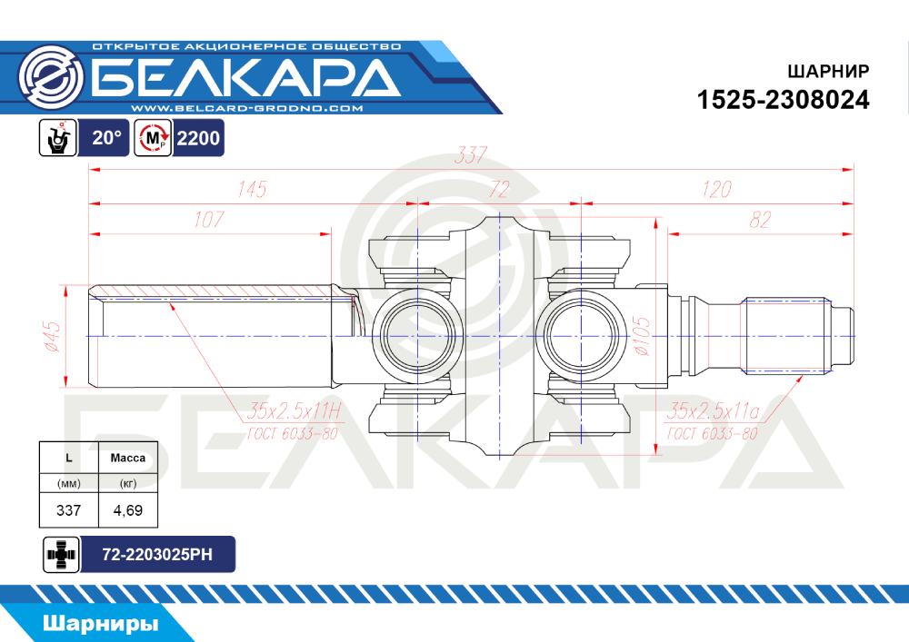 применяемые крестовины — 72-2203025РН-01,